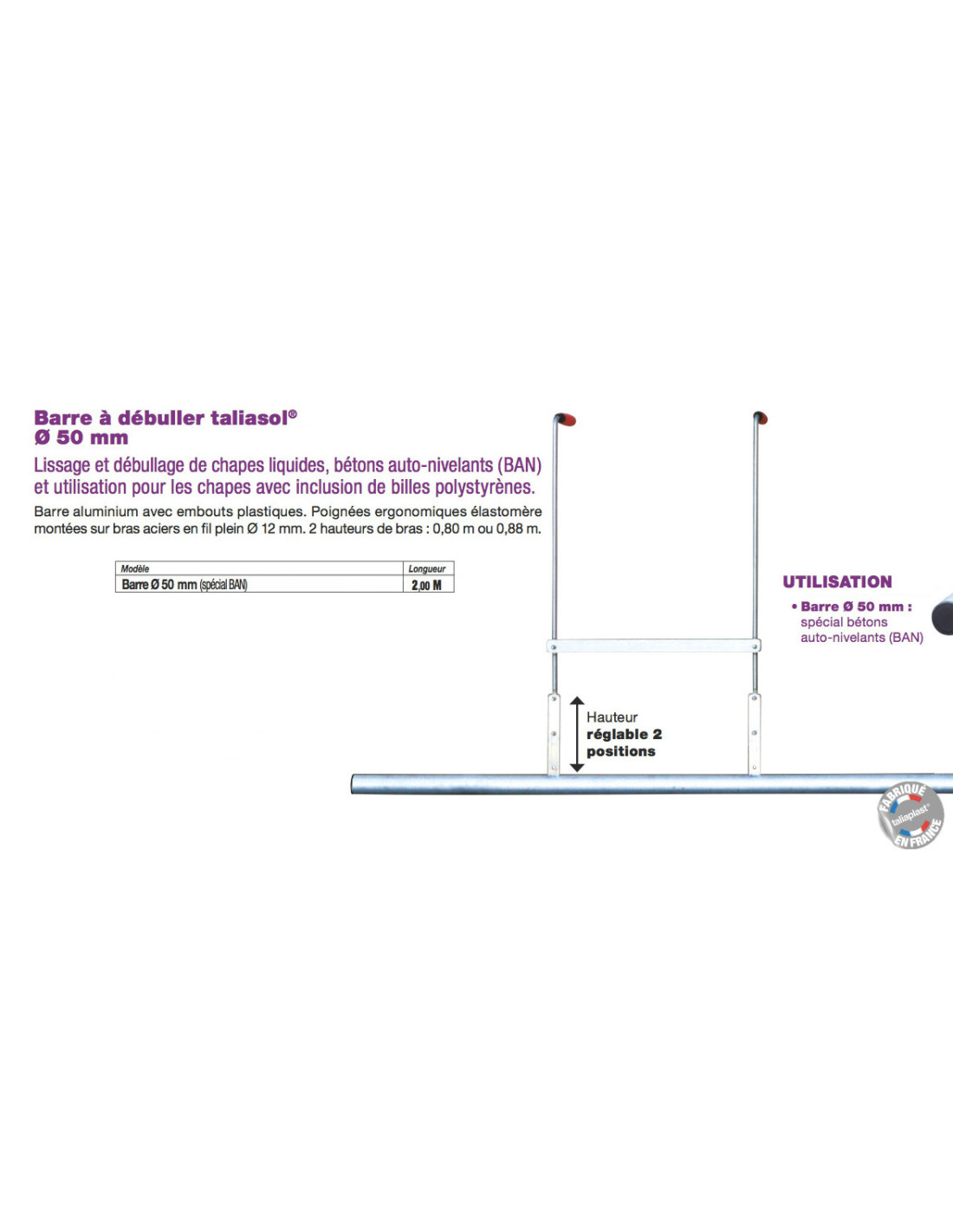Barre à Débuller Ø50mn Longueur 2,00m