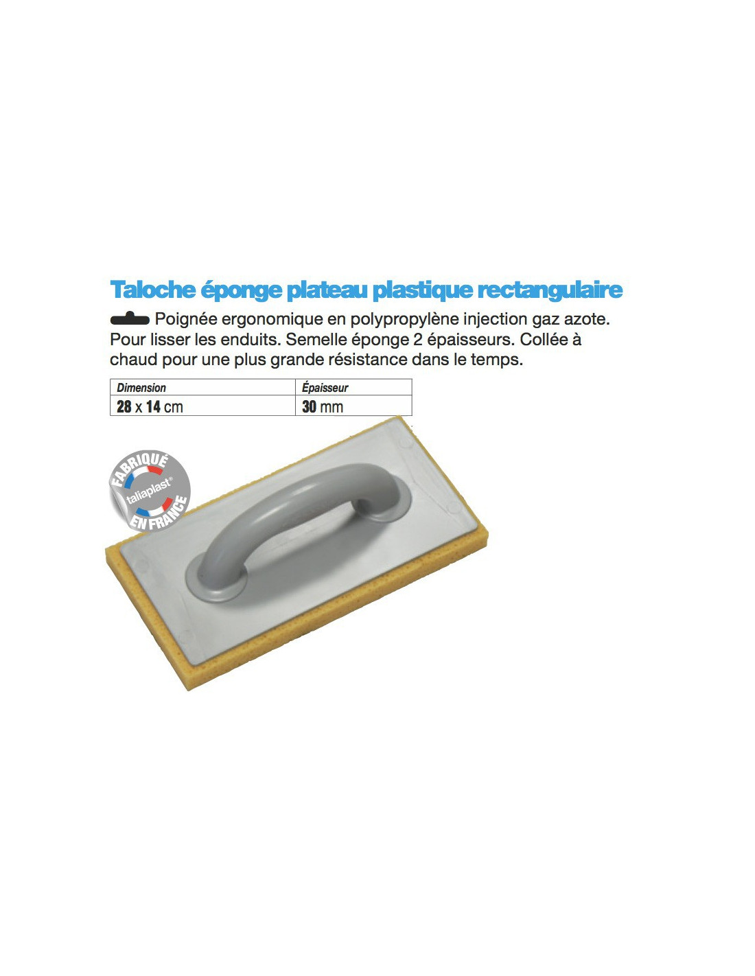 Taloche éponge plateau plastique rectangulaire Dimension 28 x 14 cm Ep 30mn