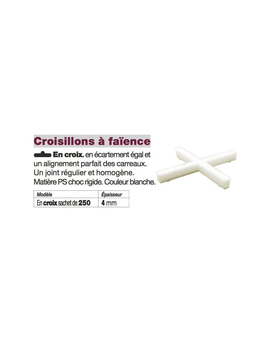Croisillons à faïence en croix 4 mm Sachet de 250