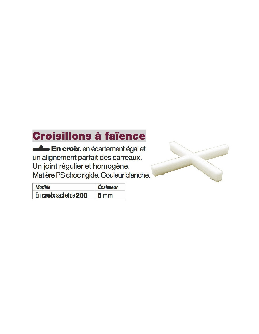 Croisillons à faïence en croix 5 mm Sachet de 200